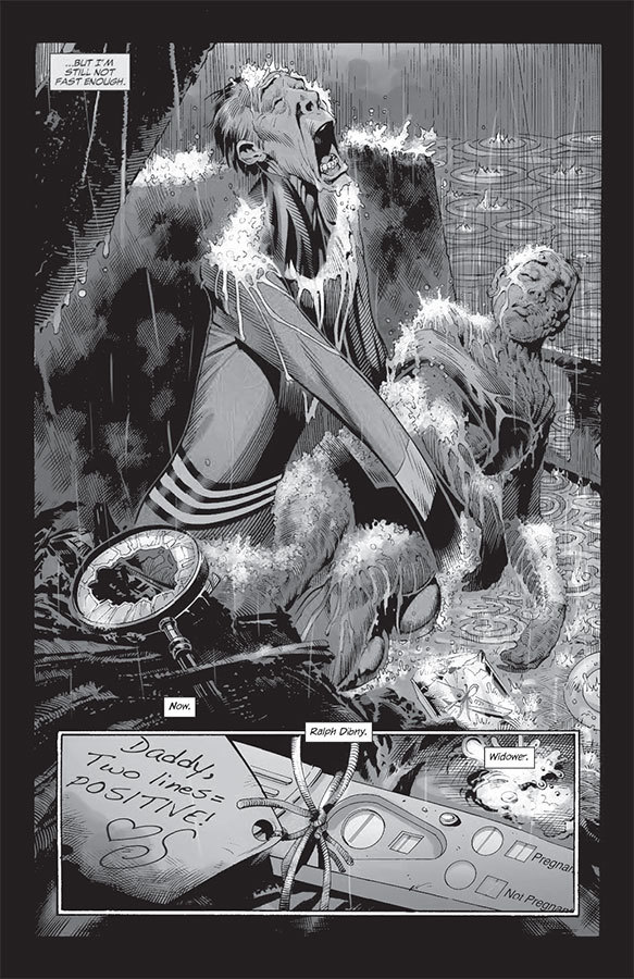 Рисовал эту историю подающий надежды Рэгс Моралес, чьи искусные композиции выкручивали до максимума эмоциональный символизм и обостряли пластичную выразительность лиц до невиданных пределов страдания, вполне уместных в истории, которая пристойность в гробу видала. Моралес специализировался на супергероях, дошедших до ручки. Он рисовал супергероев, потерявших власть над собой, осиротевших и параноидальных, в поту и слезах – а порой все это одновременно, если того требовали головокружительные американские горки сюжета.