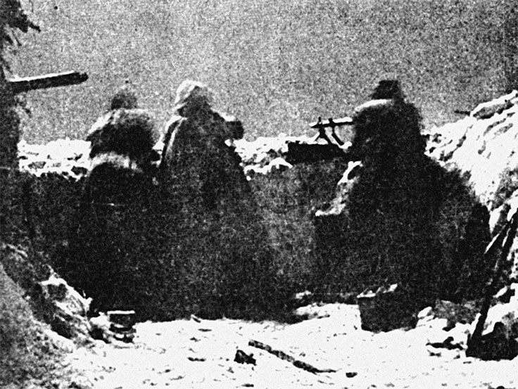 Пулеметный расчет за ледяным бруствером. Январь 1942 г.