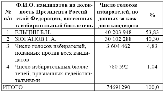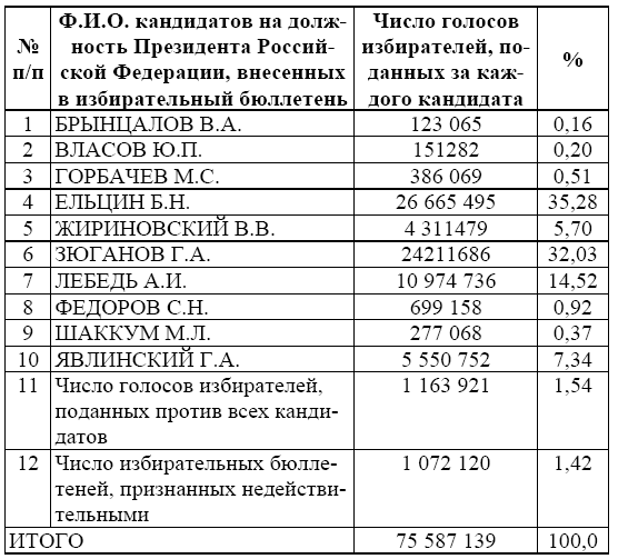 2. Итоги голосования 16 июня 1996 г. за кандидатов на должность Президента Российской Федерации