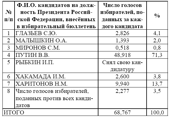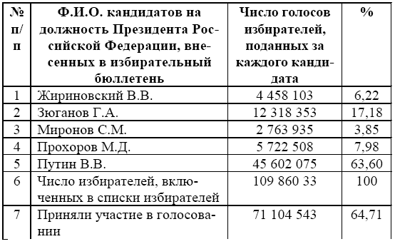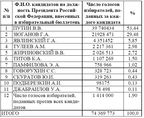 4. Итоги выборов Президента Российской Федерации 26 марта 2000 г.