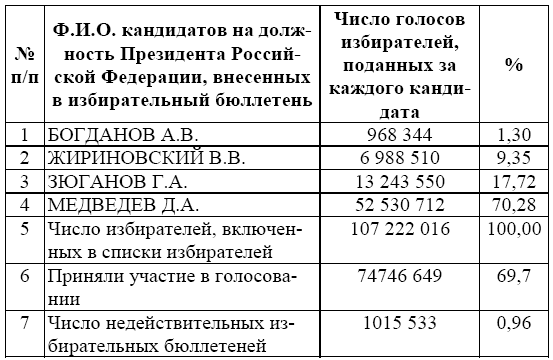 6. Итоги выборов Президента Российской Федерации 2 марта 2008 г.