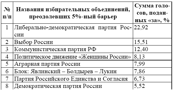 8. Выборы в Государственную Думу Результаты выборов депутатов Государственной Думы 12 декабря 1993 г.