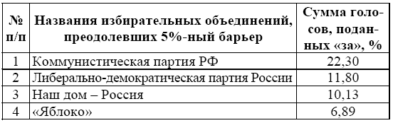 9. Результаты выборов депутатов Государственной Думы 17 декабря 1995 г