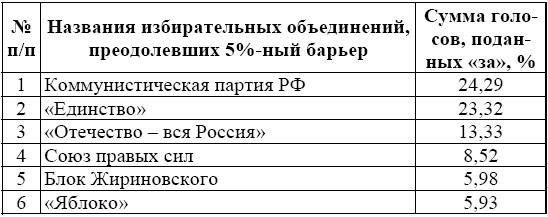 10. Результаты выборов депутатов Государственной Думы 19 декабря 1999 г.