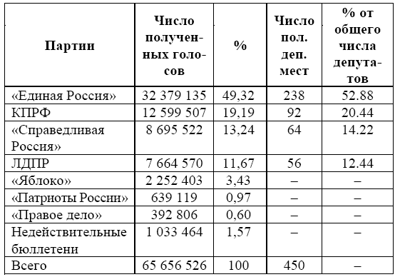13. Результаты выборов в Государственную Думу VI созыва (декабрь 2011 года)