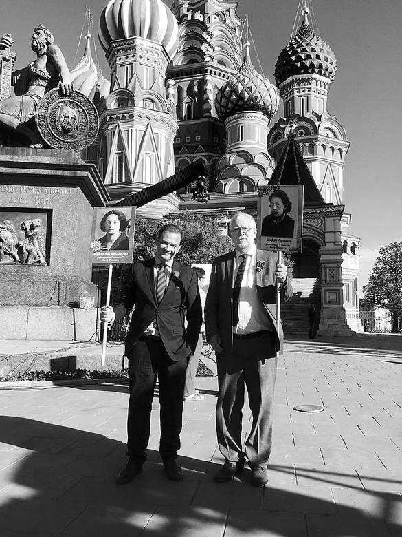 В российский День Победы мы тоже вышли на «Бессмертный полк». Конечно же, у нас обоих были родственники, кто сражался на фронтах той войны: мы же русский и англичанин. Но мы решили выйти на главную площадь России с портретами тех, кому кроме нас помянуть уже некому: советских разведчиц «Анны Успенской» (она же уроженка Польши Шифра Липшиц) и «Анны Фроловой» (она же француженка Франсин Фромон).