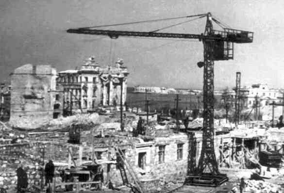 В 1945 году только по стройматериалам процент производства к 1940 году составлял по цементу — 29,6 %; по стеклу оконному — 45,1 %, по кирпичу — 18,6 %, по извести — 33,1 %. О промышленности строительных машин и оборудования приходилось вообще говорить в прошлом — пока — времени.