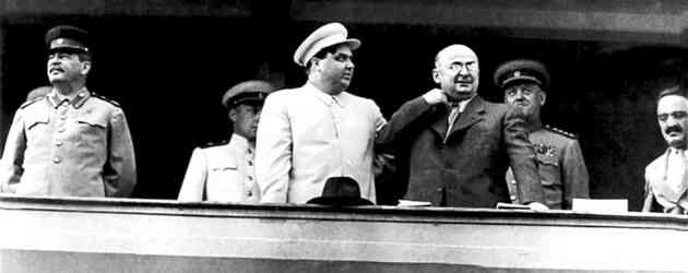 Л. П. Берия (третий слева в первом ряду) среди руководства СССР