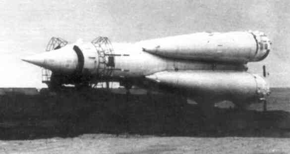 На боевую позицию транспортируют Р-7 — двухступенчатую межконтинентальную баллистическую ракету с отделяющейся головной частью. На базе Р-7 было создано целое семейство ракет-носителей среднего класса, внёсших большой вклад в освоение космоса.