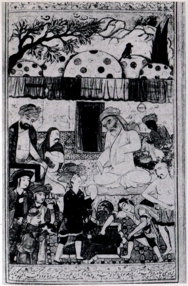 Великий поэт Фирдоуси, получив вознаграждение за свою поэму в бане, разделил деньги между банщиком, продавцом прохладительных напитков и посыльным. Иранская миниатюра XVII в. Эрмитаж