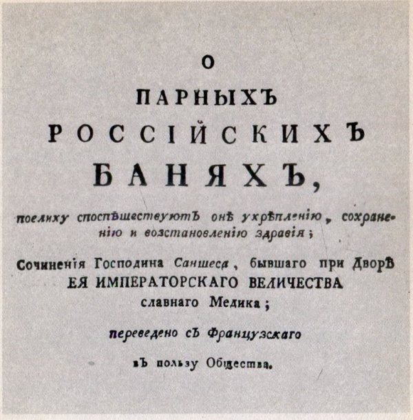 Титульный лист русского издания первой книги о русских банях. Автор Антони Нуньес Руберио Санхес, названный здесь Саншесом. Книга вышла в 1791 г.