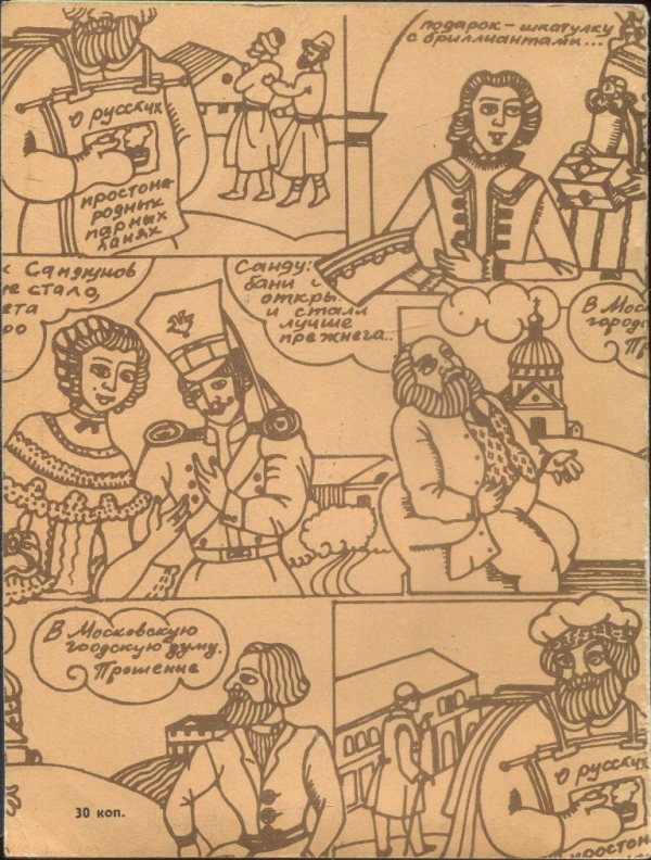 Очень осчастливлен был народ присутствием их величеств. Хотя все намеченное было исполнено, произошло и нечто другое, вне позолоченной программы, напечатанной многими красками, с завитками и рисунками. При раздаче угощений образовалась давка, сотни людей были растоптаны насмерть, и вечно щедрый царь тут же распорядился выдать каждой пострадавшей семье тысячу рублей за покойника, а если два покойника в семье, то и все две тысячи.