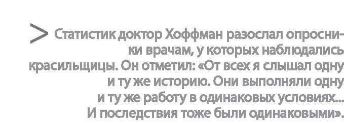 Разумеется, врач не оставил это письмо без ответа. «Сожалею, что вы сочли наш отчет предварительным и основанным на косвенных доказательствах, и боюсь, что его повторение вряд ли сможет изменить подобное впечатление». Он снова подчеркнул: «Мы обнаружили изменения в составе крови у многих ваших сотрудников, которые не могут быть объяснены какими-то иными причинами».