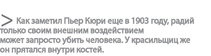 Можно сказать, что радий выискивает кости, подобно кальцию; а человеческое тело запрограммировано направлять кальций прямиком к костям, чтобы их укреплять… По сути, радий выдавал себя за кальций, и, будучи обманутым, организм откладывал его внутри костей.