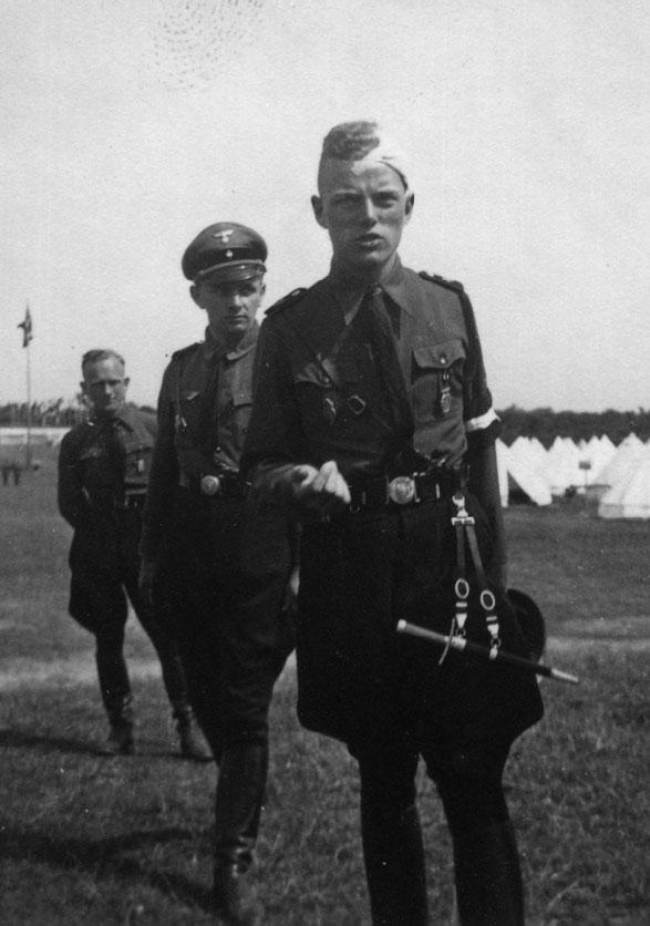 Офицер Алльгемайне СС в одном из учебных лагерей гитлерюгенда в 1930-е годы. Как видно, сотрудничество этих организаций началось уже в довоенный период