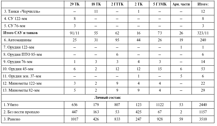 Сведения о состоянии, потерях и трофеях частей и соединений 5 гв. танковой армии на 16 июля 1943 г[803].