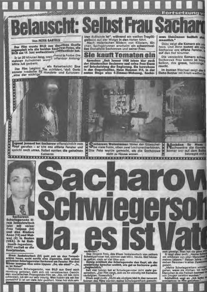 «…Комитетом госбезопасности в июне с. г. в зарубежной прессе была организована публикация двух фотографий: Сахарова и Боннэр, сделанных в г. Горьком, — докладывает глава КГБ Чебриков в секретном письме ЦК КПСС 8 августа 1984 г. — …Эти публикации вызвали определённое замешательство на Западе. Однако в последнее время клеветническая кампания с использованием имени Сахарова вновь активизировалась».