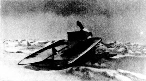 Первым ударом о торос была сбита правая лыжа. О следующий левая. Мотор пришлось тотчас же выключить, чтоб не возникло пожара.