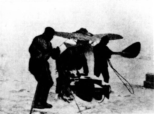 Летчик М. Бабушкин (справа) и бортмеханик Г. Валавин отремонтировали свой самолет и перелетели в Ванкарем.