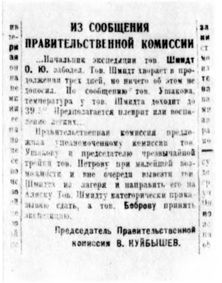 Валериан Владимирович Куйбышев — председатель правительственной комиссии по оказанию помощи челюскинцам.