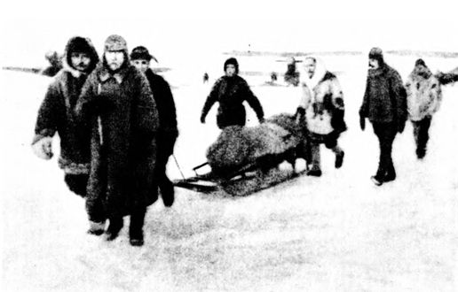 О. Ю. Шмидт на самолете Молокова был доставлен из лагеря в Ванкарем.