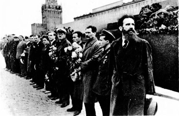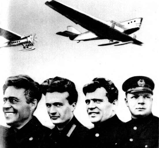 Первые Герои Советского Союза — А. В. Ляпидевский, С. А. Леваневский, М. Т. Слепнев, В. С. Молоков, Н. П. Каманин, М. В. Водопьянов, И. В. Доронин.