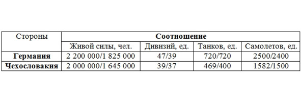 По основным параметрам чехословацкие танки в 1938 г. превосходили немецкие. Поэтому, даже более чем двукратное превосходство в числе машин (720 против 348) не позволяло германским танковым соединениям вести успешную борьбу с чехословацкими в случае боевых действий, где немецкой армии пришлось бы преодолевать оборону укреплений в гористой и лесистой местности.