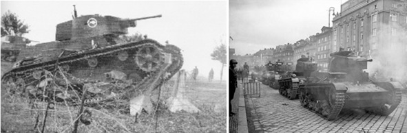 1. Польский танк 7ТР из состава 3-го бронебатальона преодолевает пограничные чехословацкие укрепления 2. Польские танки 7ТР входят в чешский город Тешин