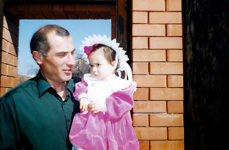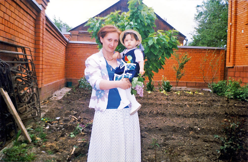 Светлана с дочерью Дианой во дворе недавно построенного дома Калоевых. Владикавказ. Весна 1999 года