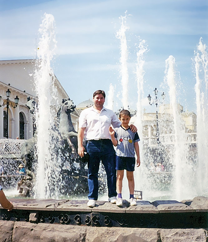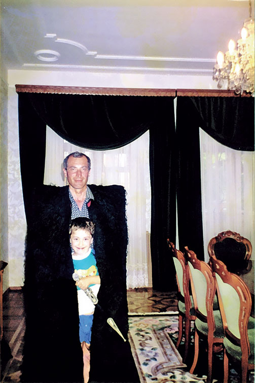 Виталий с сыном Костей в гостиной недавно построенного дома Калоевых. 1999 год