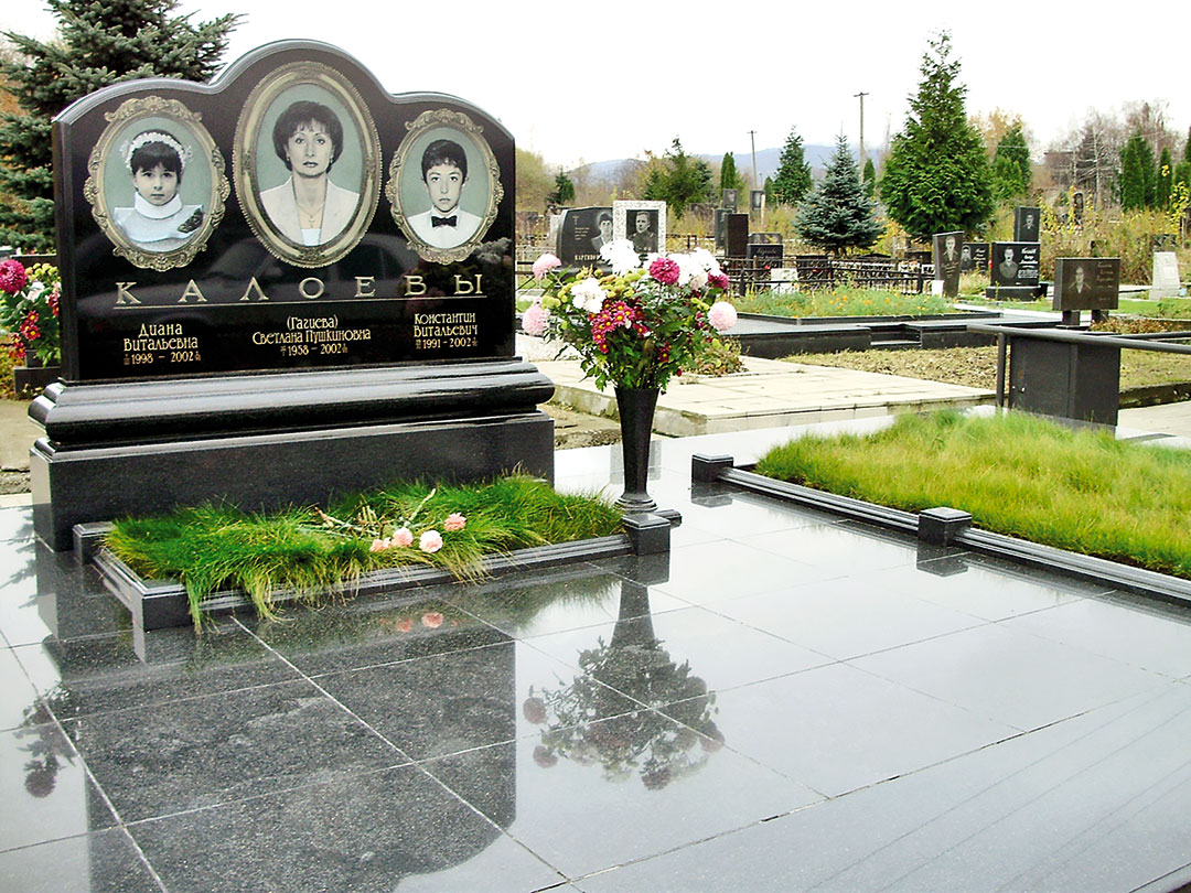 Памятник Светлане, Косте и Диане Калоевым на месте их захоронения. Владикавказ