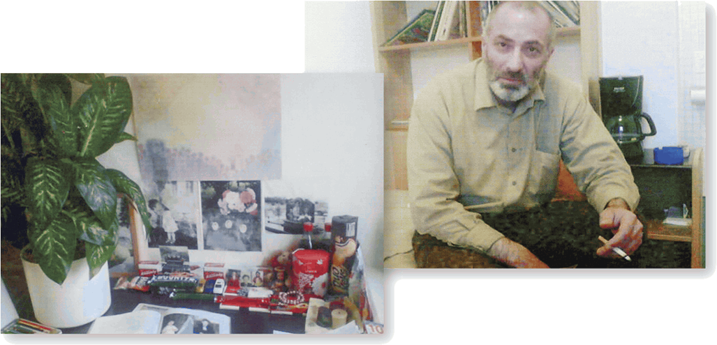 Виталий Калоев в своей камере во время отбывания наказания в швейцарской тюрьме. На фотографиях можно рассмотреть стену с фотографиями близких и цветок, загадку которого пытался разгадать Калоев. Снимки сделаны на камеру мобильного телефона в 2006 году