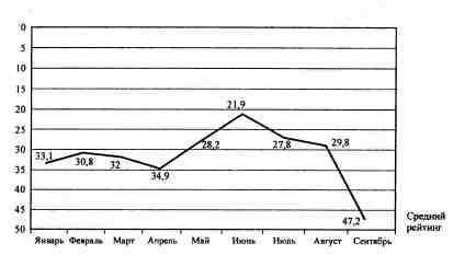 Рисунок 10. Изменение рейтинга влиятельности олигархов в течение 1998 г.