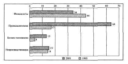 Рисунок 11. Динамика структурных изменений бизнес-элиты (/993-2001 гг.)[378]