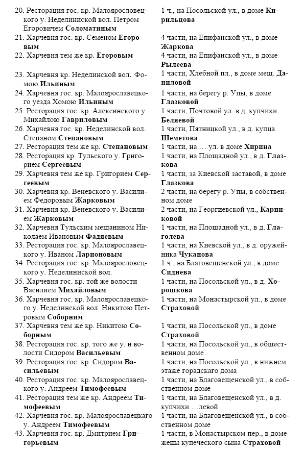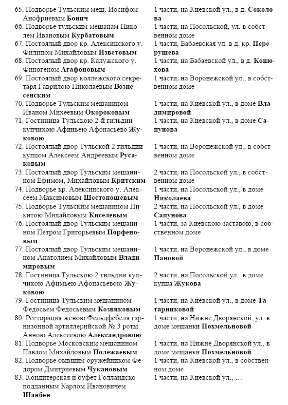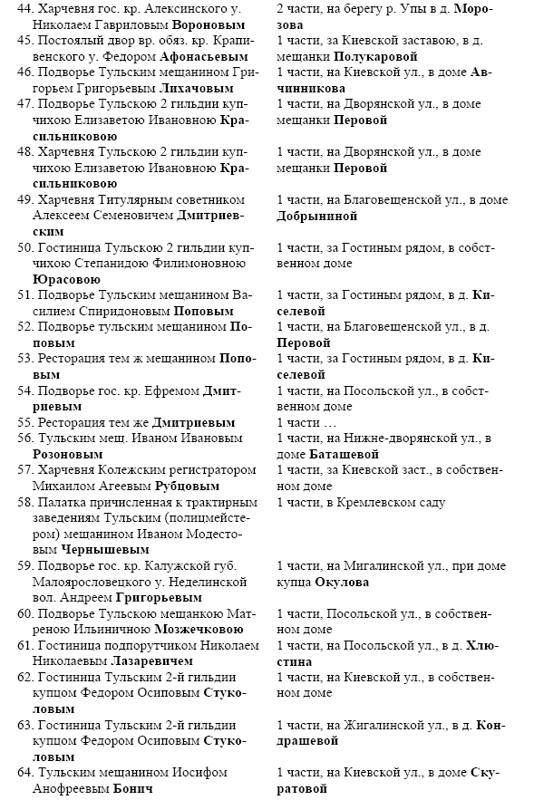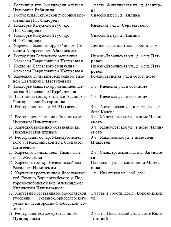 Список гостиниц, ресторанов, постоялых дворов и кабаков города Тулы. 1866 год