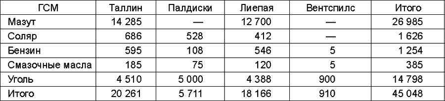 Таблица 11. Поставки топлива на базы КБФ в декабре 1939 – феврале 1940 г. (т)[516]