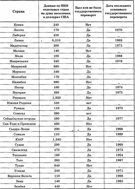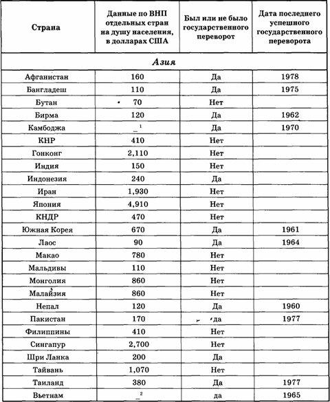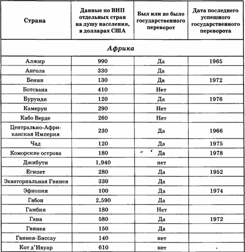 Таблица I: Экономическое развитие и государственные перевороты, 1945-78 гг.