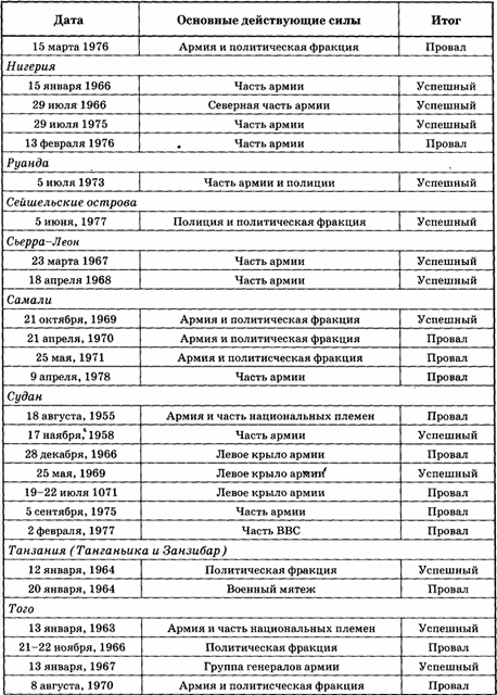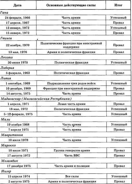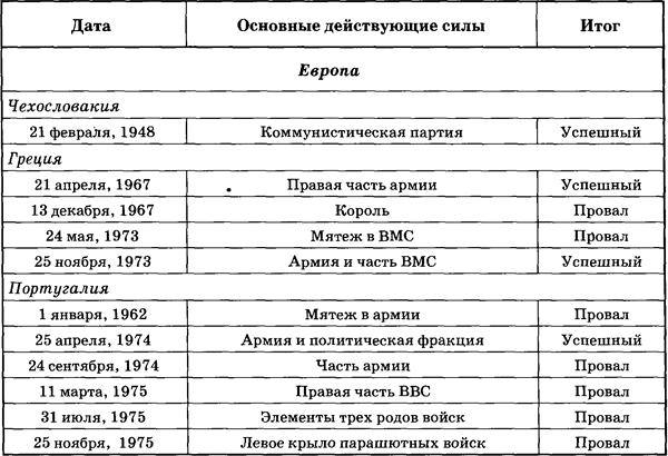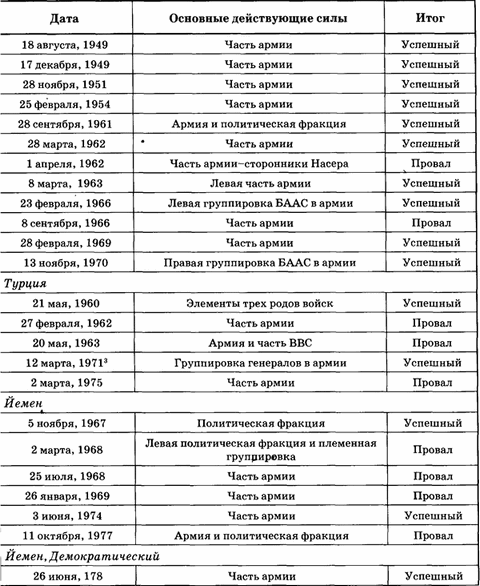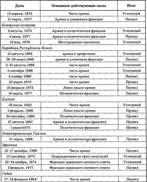 Таблица II: Перечень основных государственных переворотов и попыток переворота, 1945-78 гг.