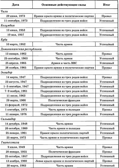 Таблица III: Эффективность государственных переворотов, 1945-64 гг.