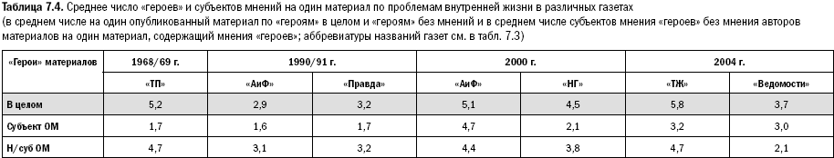 В более мягкой форме это видно у журналистов. В целом они тяготеют (см. отклонения от средней табл. 7.6) к описанию жизни и выражению мнения руководящих слоев населения. Однако в описании жизни руководителей-«героев» им предоставлено больше свободы, чем в выражении их мнений.