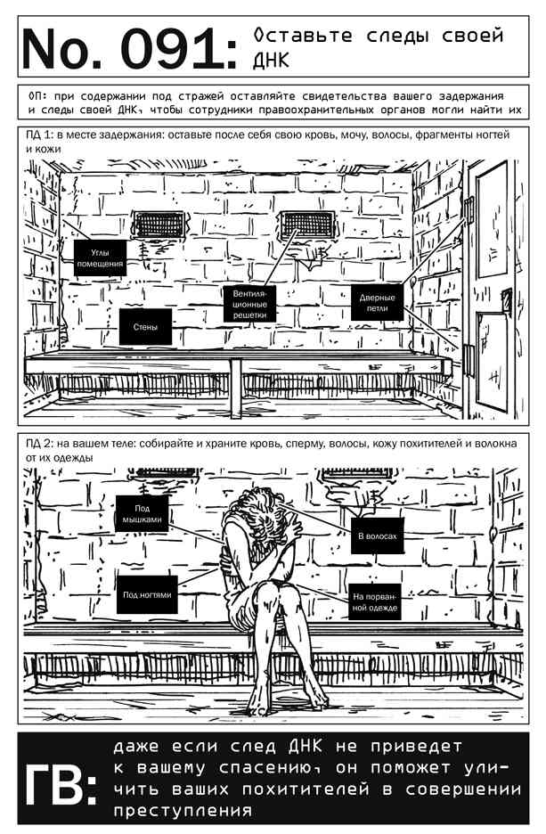 В худшем случае, если вы не переживете выпавшее на вашу долю тяжкое испытание, оставленные вами следы ДНК помогут в будущем свершиться правосудию. Ваши действия принесут пользу и станут невидимым, но важным сообщением, которое вы оставите на стене: «Ябыл здесь».