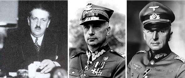 1. Я. Шембека заместитель польского МИД в 1932—1939 гг. 2. К. Соснковский в 1939 г. командующий южным фронтом 3. Э. Манштейн в 1939 г. начальник штаба группы армий «Юг»