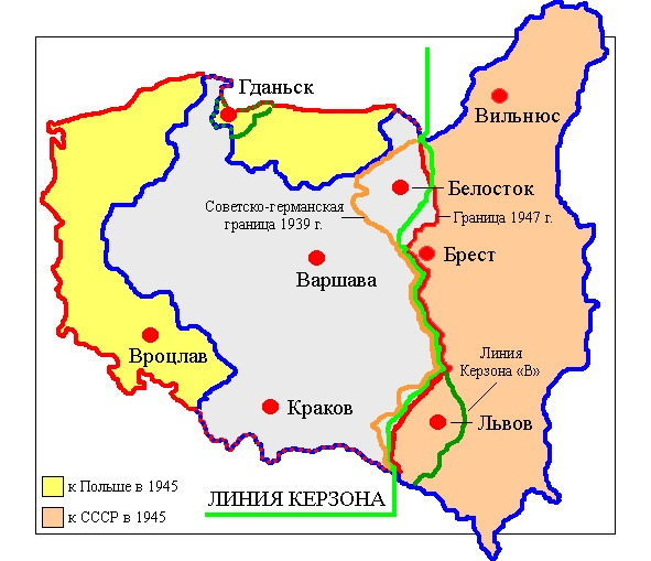 «Линия Керзона» и польские границы в 1939 г. и в 1945 г.