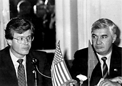 Пресс-конференция руководителя делегации США, посла Э. Вульфа, и руководителя делегации СССР, заместителя министра рыбного хозяйства СССР В. Зиланова, по итогам переговоров по проблемам урегулирования рыболовства в Беринговом море в 1991 г.