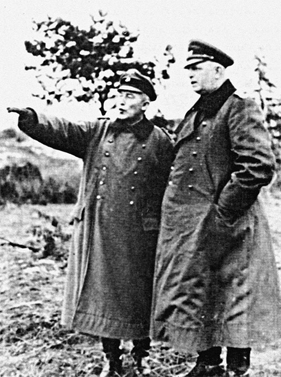 Кляйнхайстеркамп объясняет генерал-полковнику Бушу положение на линии обороны своего полка
