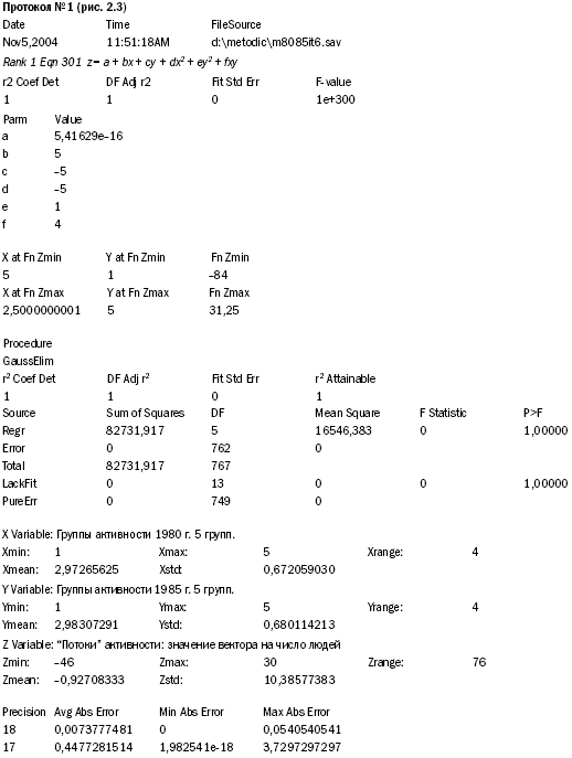 В разделе «Date» протокол показывает, что по всем 768 респондентам (точкам) эмпирически полученное значение «Z» совпадает с теоретически предсказываемой частотой, а это значит, что все эмпирически полученные в замере результаты ложатся на поверхность приведенной в трехмерной графике «параболы».