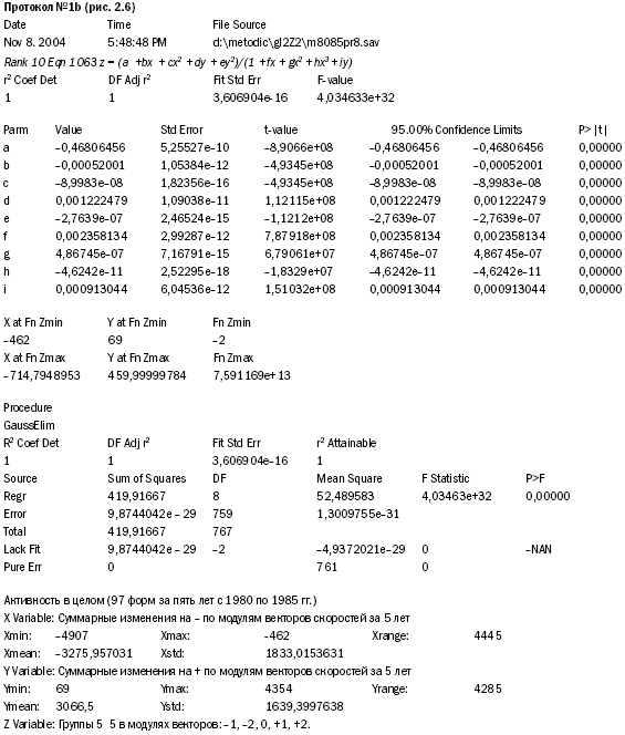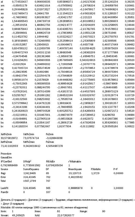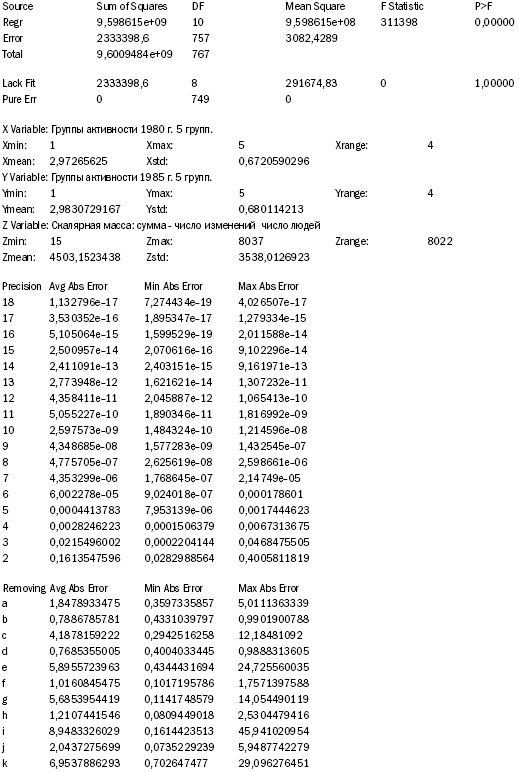 В разделе «Date» протокол показывает, что по всем 768 людям эмпирически полученное значение «Z» совпадает с теоретически предсказываемой частотой, а значит, по замеру суммарных изменений все респонденты со 100% вероятностью попадают в соответствующие группы перехода, т. е. все «точки» ложатся на полученную в трехмерной графике замкнутую фигуру.