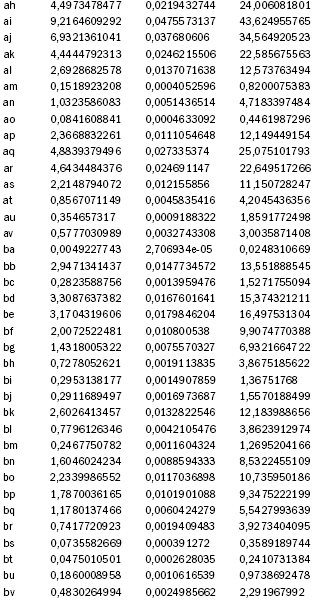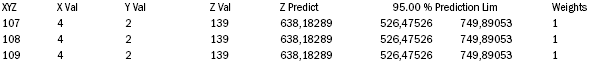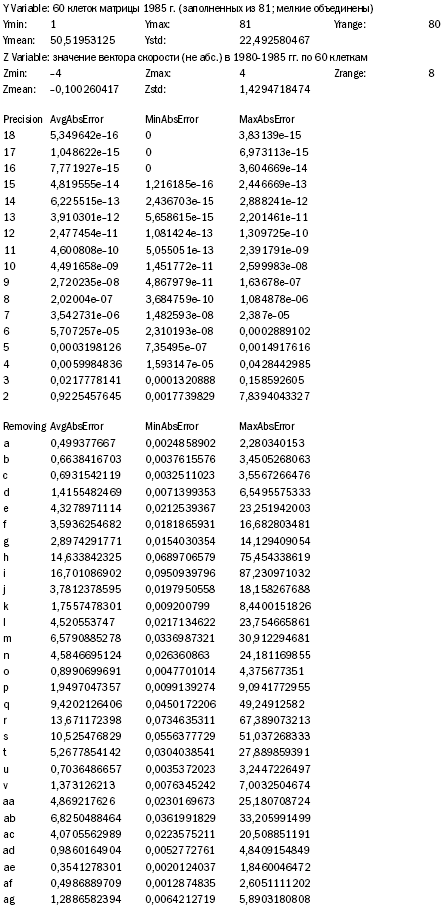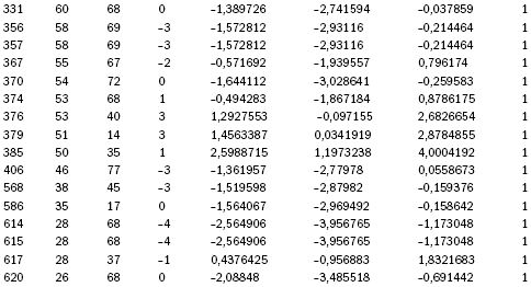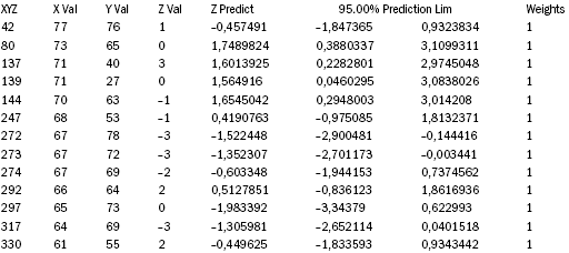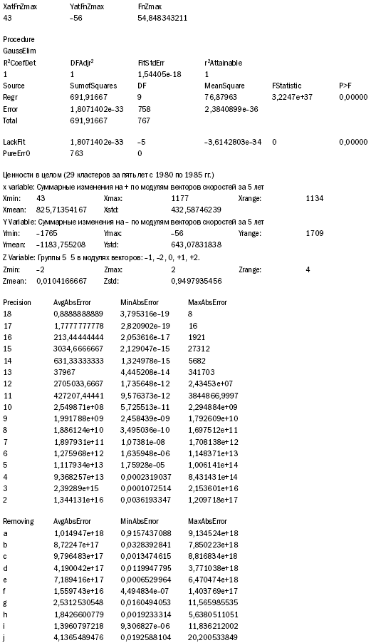 В разделе «Date» протокол показывает, что из 768 документов лишь у 29 (3,77 % массива) эмпирически полученное значение «Z» не попадает в 95% предсказанный интервал; таким образом, 96,23 % эмпирически полученные в замере результатов четко ложатся на поверхность приведенной в трехмерной графике фигуры. Ниже приводится данные по 29 документам.
