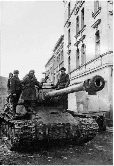 Танк ИС-2 на улице немецкого города. Тяжелые ИСы применялись в основном в полках и бригадах непосредственной поддержки пехоты