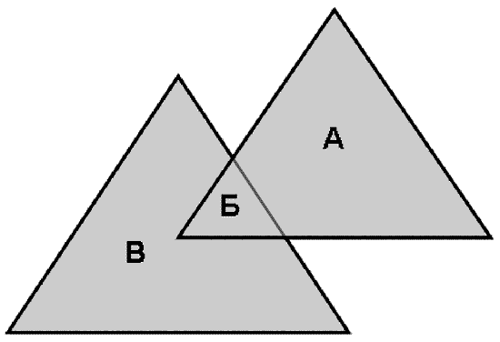 Рис. 9. Схема сращивания «криминального менеджмента» с официальной бюрократией: А — криминальный менеджмент, «освобожденный» от риска; источник финансирования «теневой» экономики; Б — зона сращивания; представлена владельцами капитала, выполняющими определенные функции «сопровождения» «теневых» процессов управления; В — некоррумпированный аппарат управления.